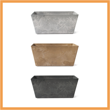 如果說要找一款兼具外觀及功能性的盆器,ART STONE是很好的代表。混合石粉的材質能抵擋陽光直射及溫度引起的變形或變色。混合樹脂的關係,冬天低溫也不容易裂開受損。材質上不只耐用,也有輕便的效果,不管移植、澆水、移動,一點都不費力。